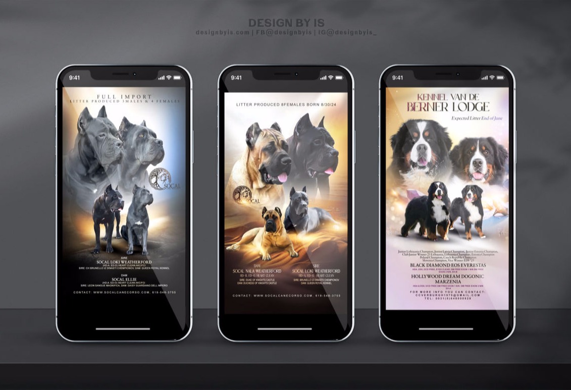 From single dog presentations and litter announcements to full kennel branding and social media bundles